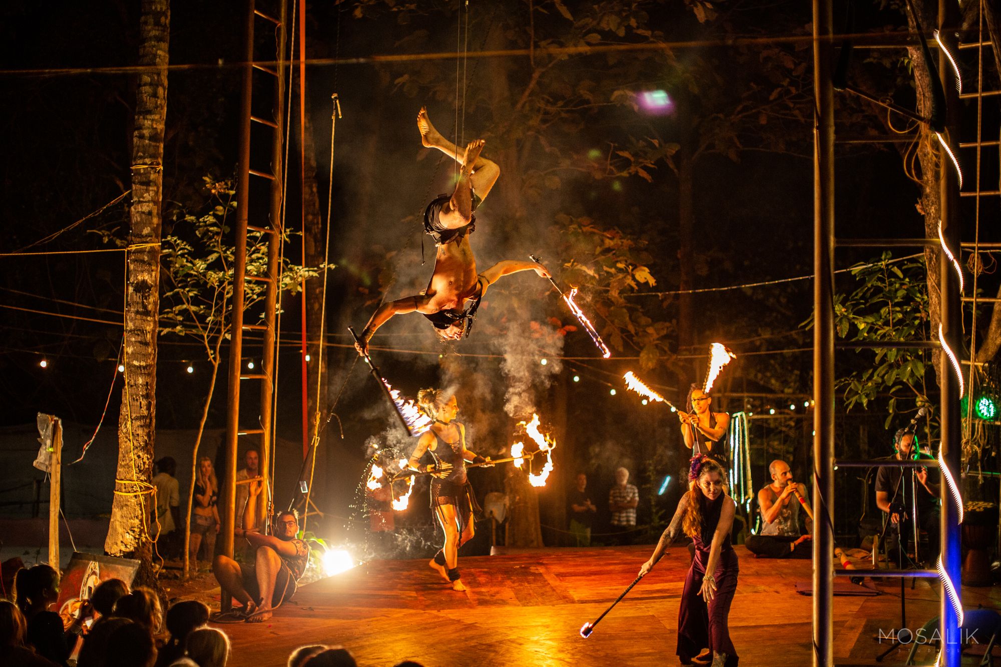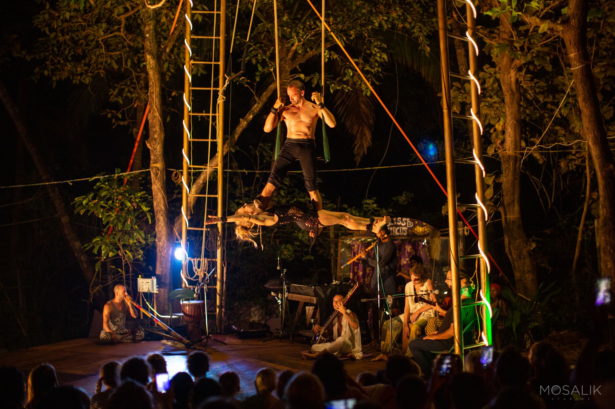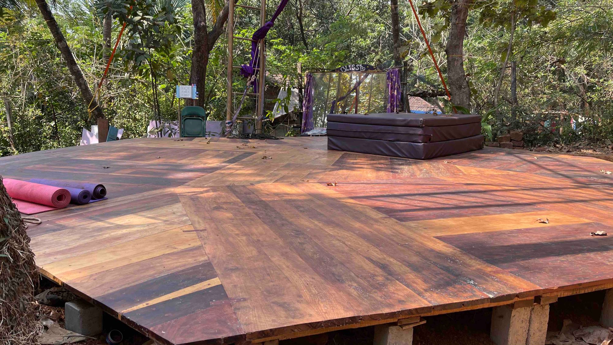 After a month or more of hard work, and more R&D by the local team here in Goa the stage build is nearly finished. We have tested it with a live show, where we had a total of 8 musicians and 13 performers on it. We realise how truely fortunate we are to be in one of the few places in the world where we could do any of this. I only hope this is paving the way to many more collaborations in more places where you rarely see circus.
