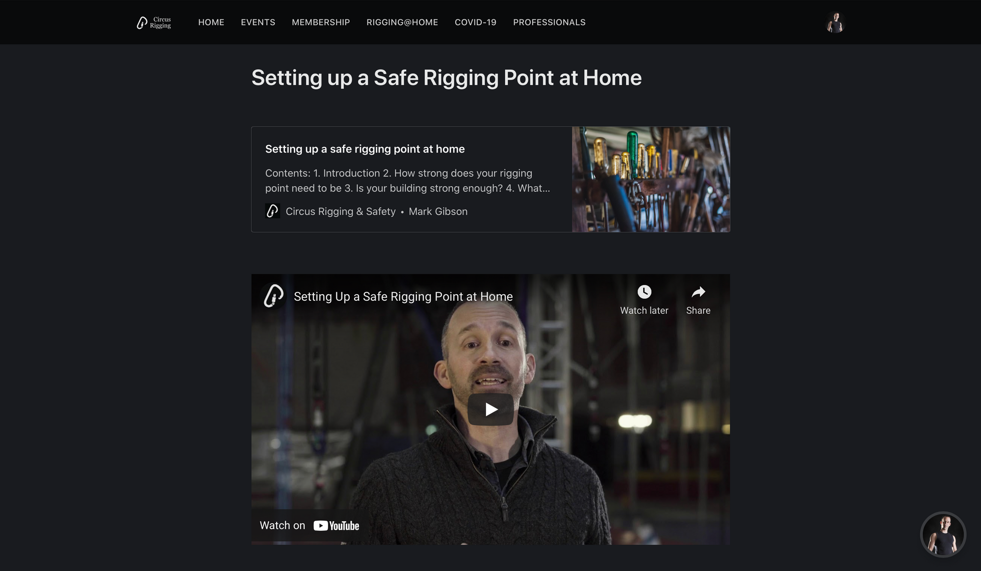 The existing COVID-19 section remains and has been reorganised. We have a new Rigging@Home section which contains public articles and videos for recreational students and parents who may want to consider rigging at home and we have a new Professionals section where we can get a lot more technical.