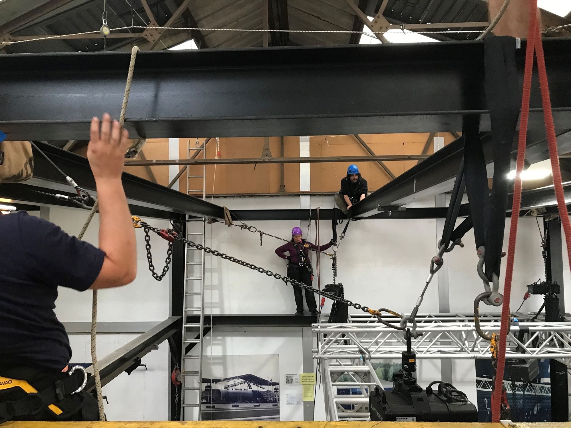 It’s largely practical with the theory woven into it, and the ratio of participants to trainer is 6:1 so that everyone is kept busy from 10am-5pm each day, and not just observing others doing the work. There are some online training options on the Total Solutions website, which are a product of lockdown. It is usually 1:1 tuition for people who are working as riggers and want to fill in gaps without doing a course.